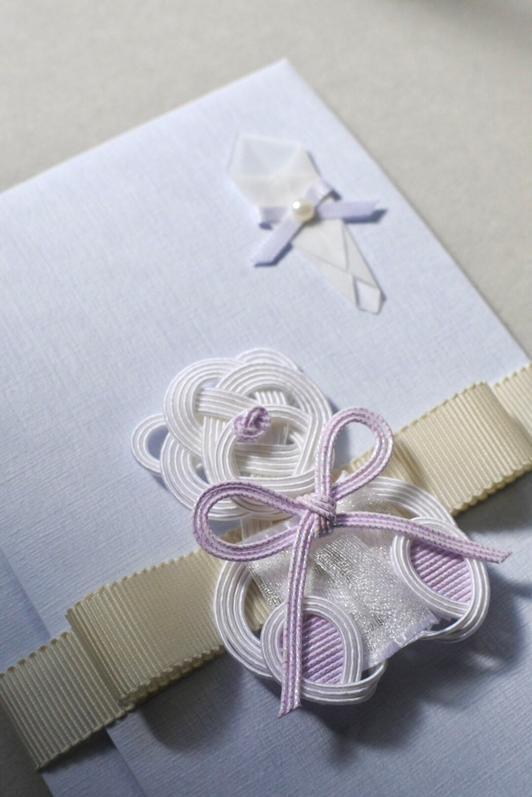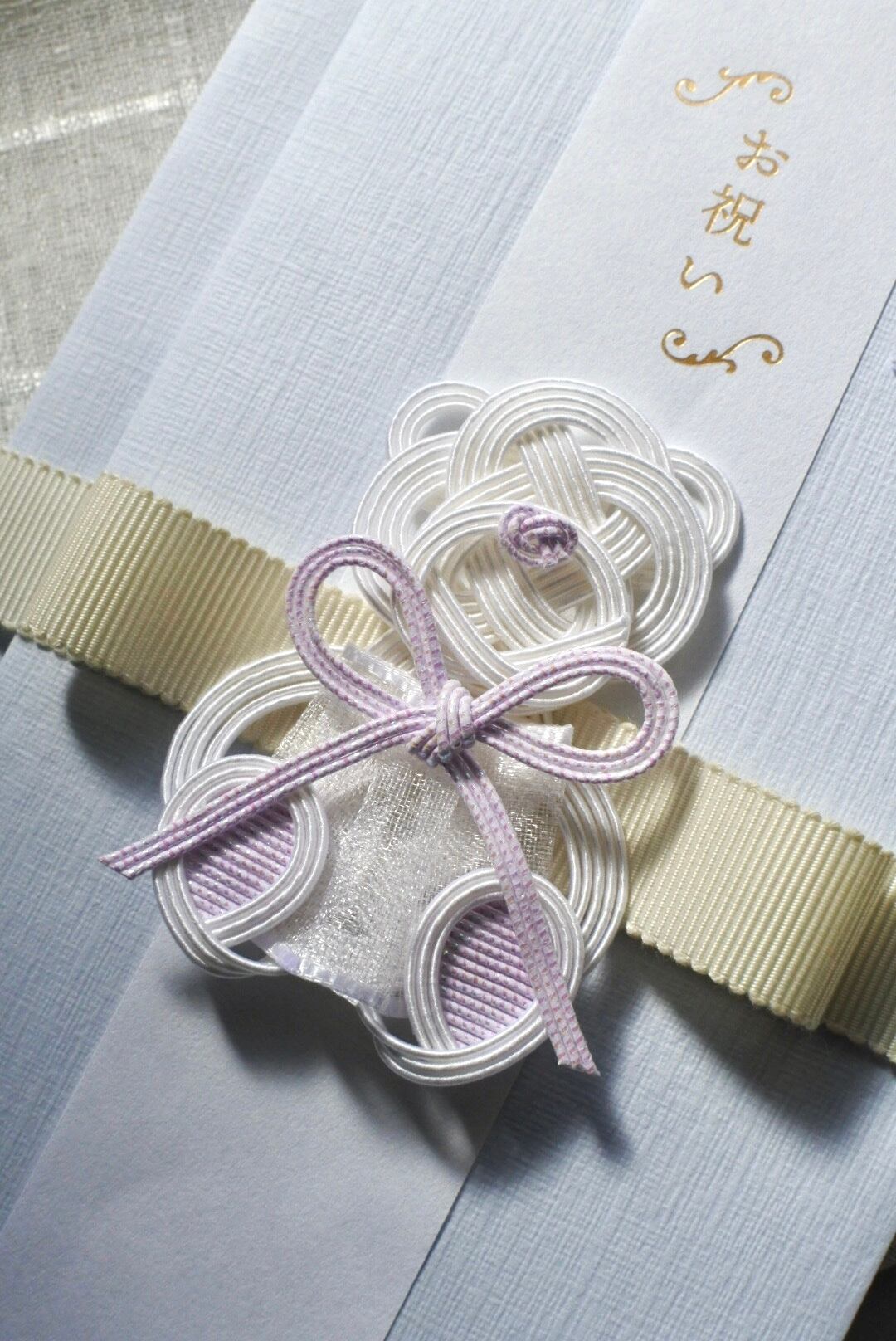 水引はキラキラ輝く、ラベンダー色のものを使用しています⌘