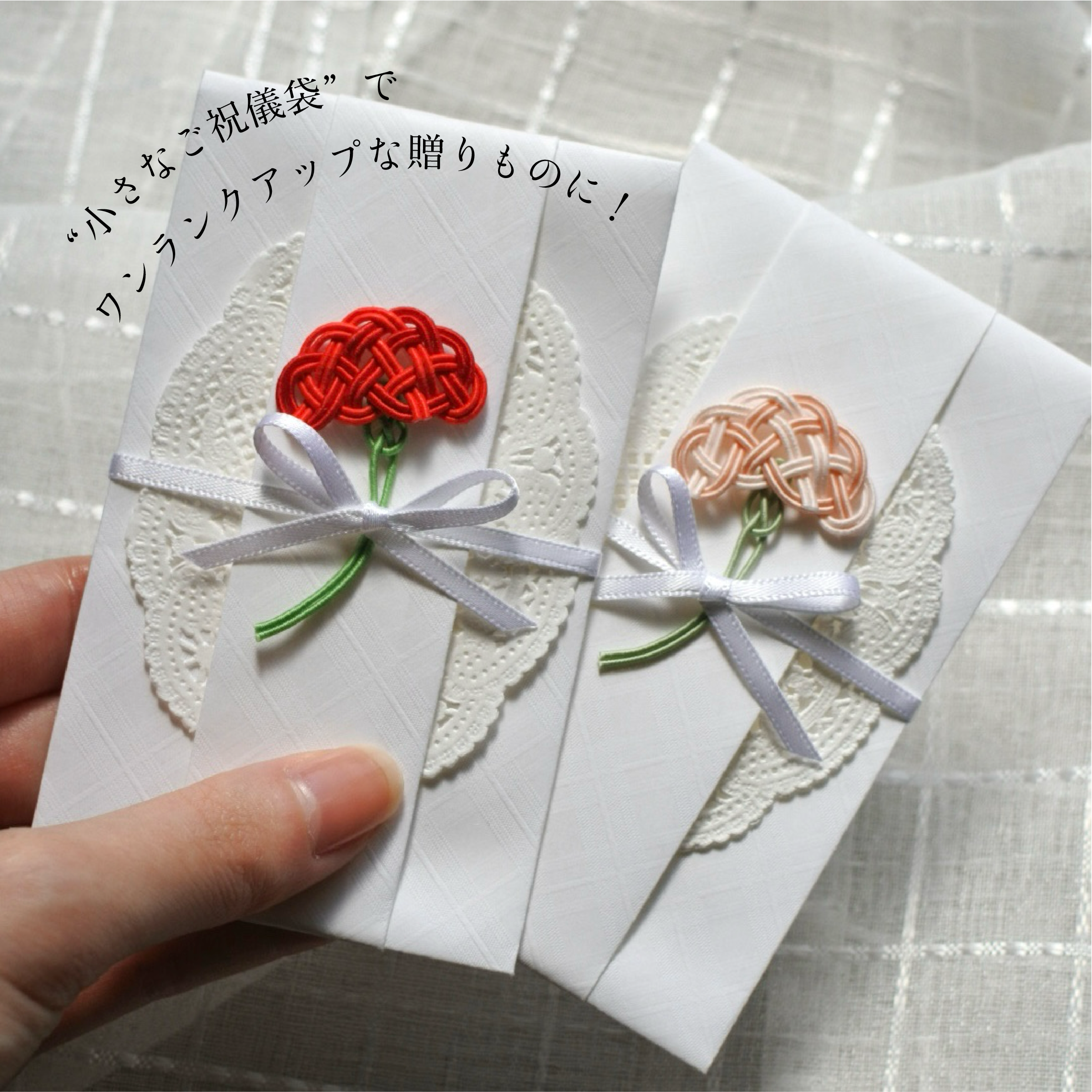 レースペーパーを合わせた上品さ溢れる”小さなご祝儀袋”に