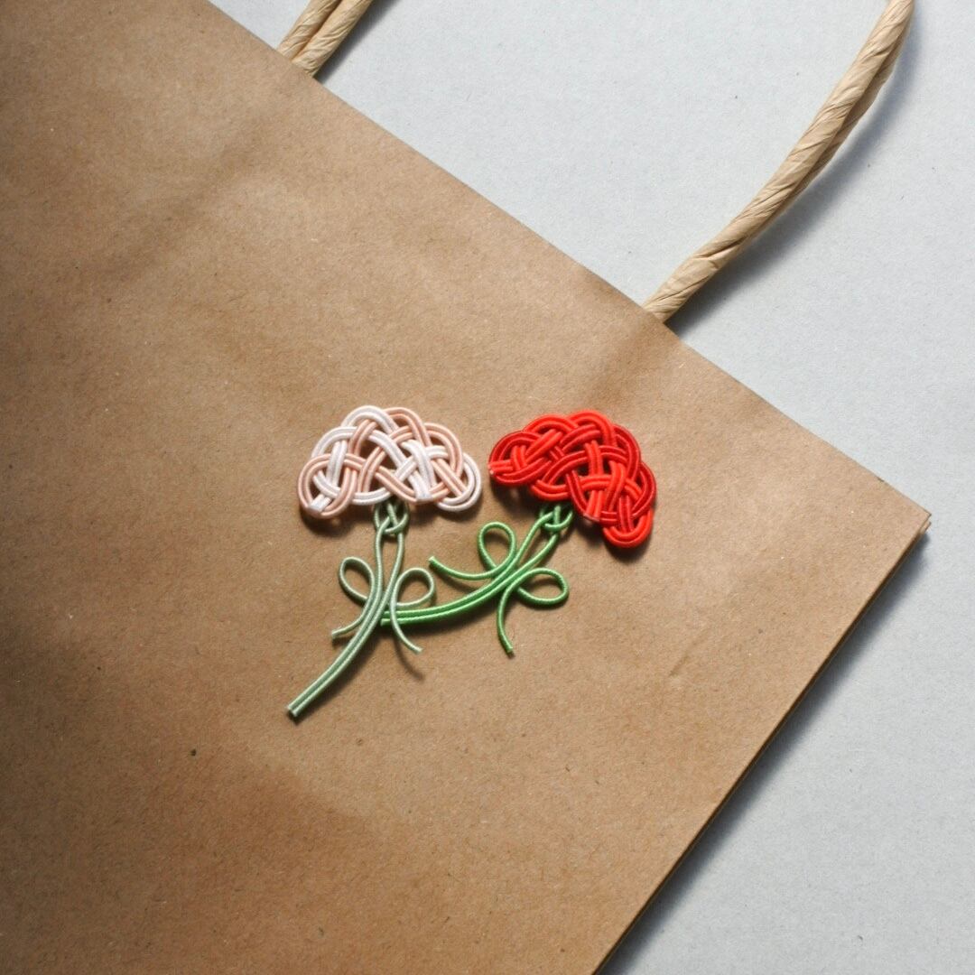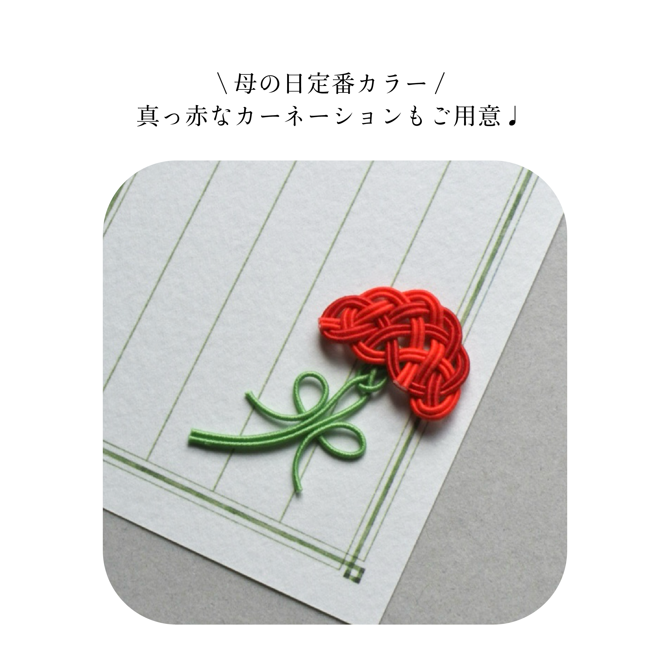 カーネーションの水引パーツでアレンジをお楽しみいただけます♩