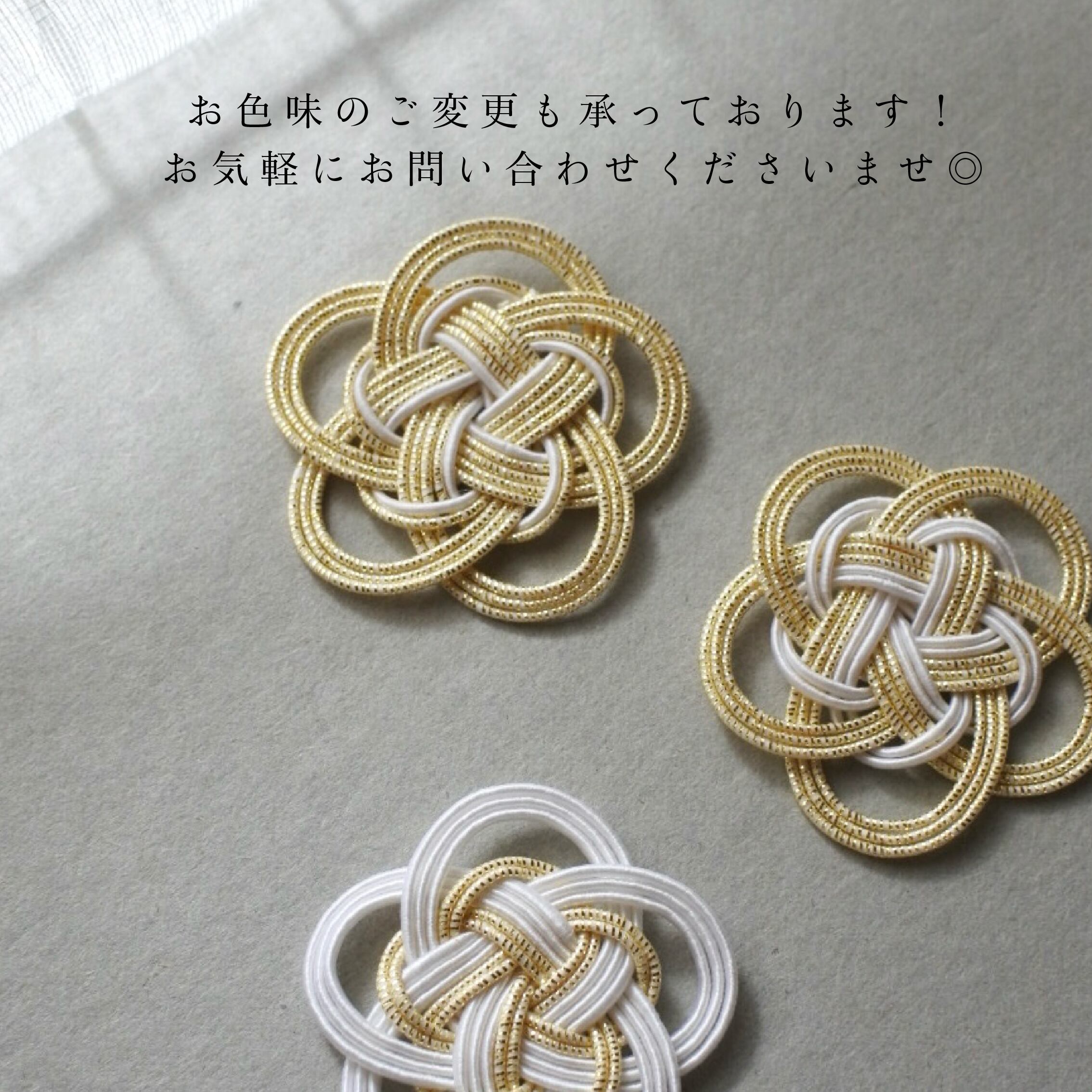 紙でできた素材である水引でお作りしているので、他の素材よりも軽いつけ心地です♩