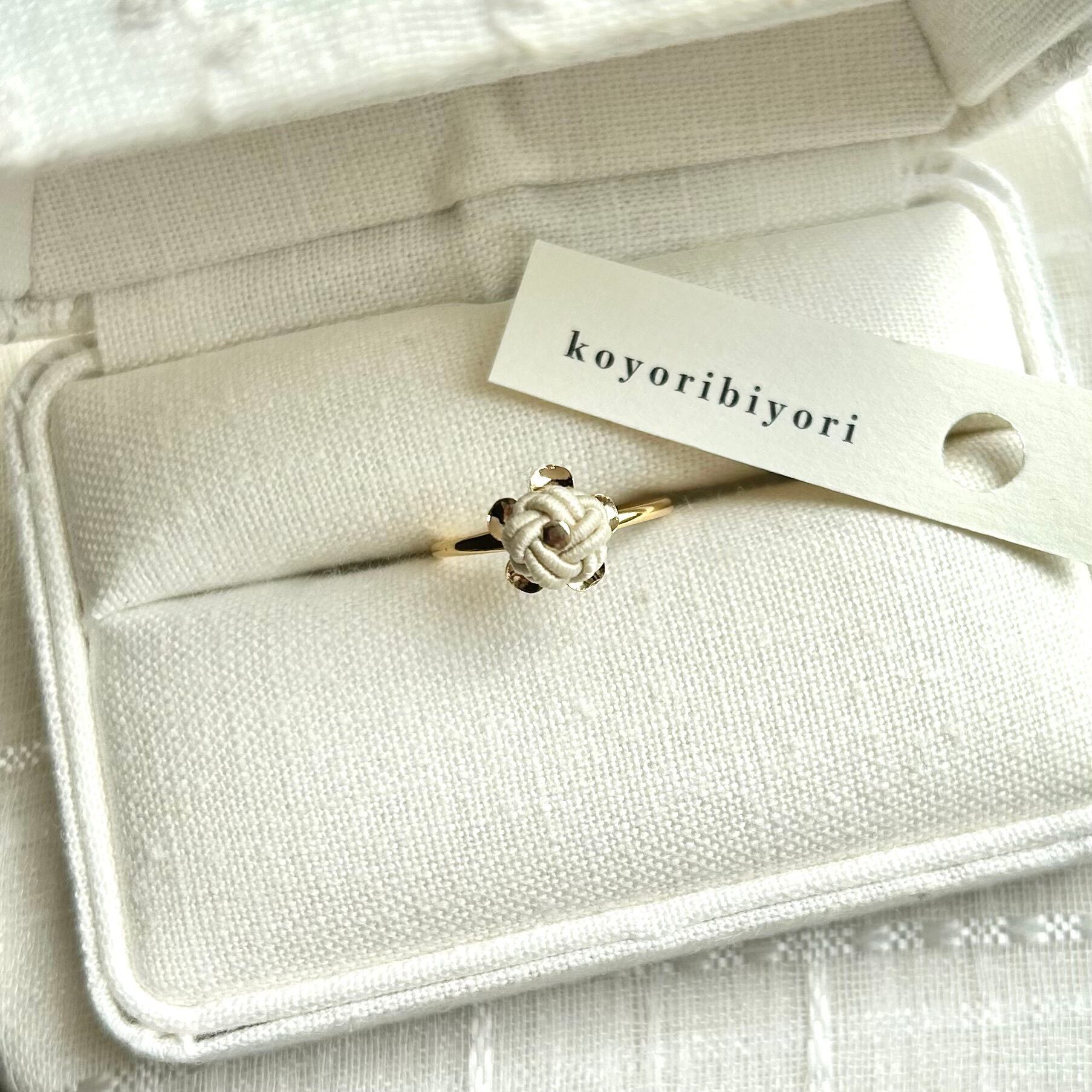 上質な絹巻水引を使用しておりますので、水に濡れた場合は、乾いた布で拭いていただき日陰で干していただきましたら、強度が落ちることなくご使用いただけます。素材本来の美しさを活かしたいため、防水加工はしておりませんので、プールや食器洗いなどの際は指輪を外していただくことをおすすめしております。