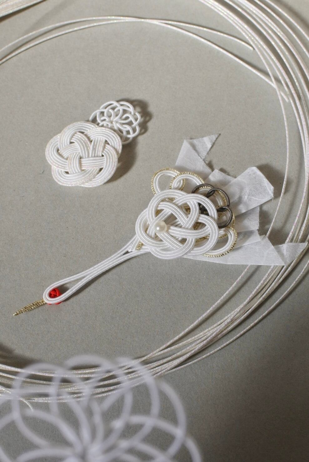 鶴は伝統的な結びで丁寧にお作りし、羽ばたきを表現するために翼は雲龍和紙を使用しました。