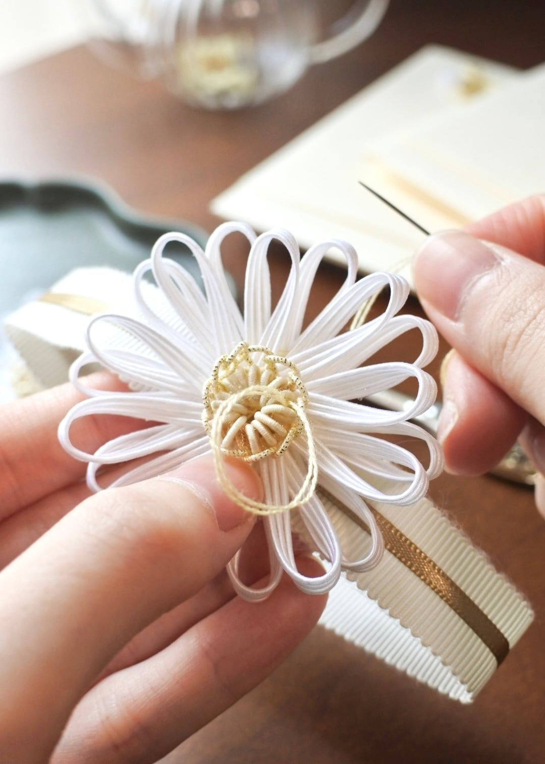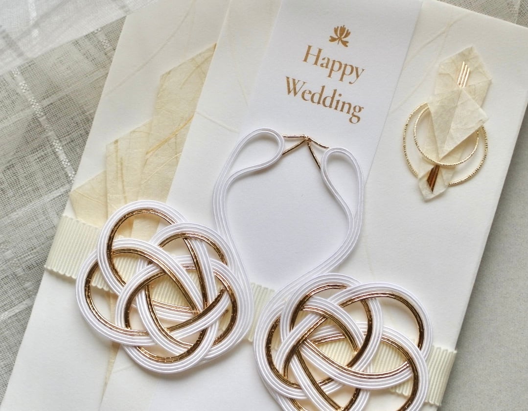 ご祝儀袋から形を変えてアレンジいただけるように水引飾りは“ワイヤーまたは糸”で固定し、綺麗に取り外しいただけるようにしています。