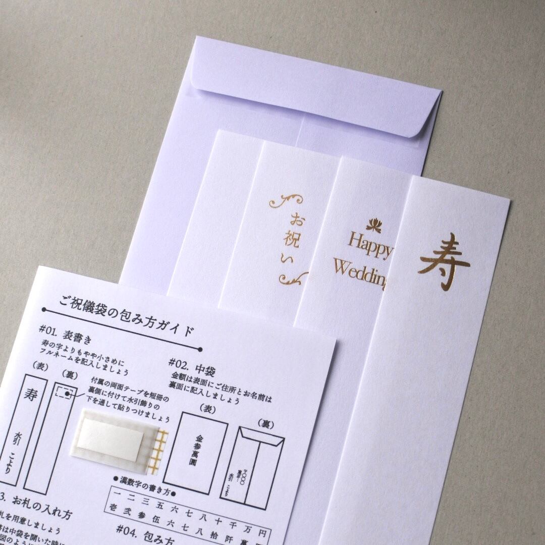 ご祝儀袋のモチーフに込められたコンセプトや花言葉を記載したカードをお付けしています。